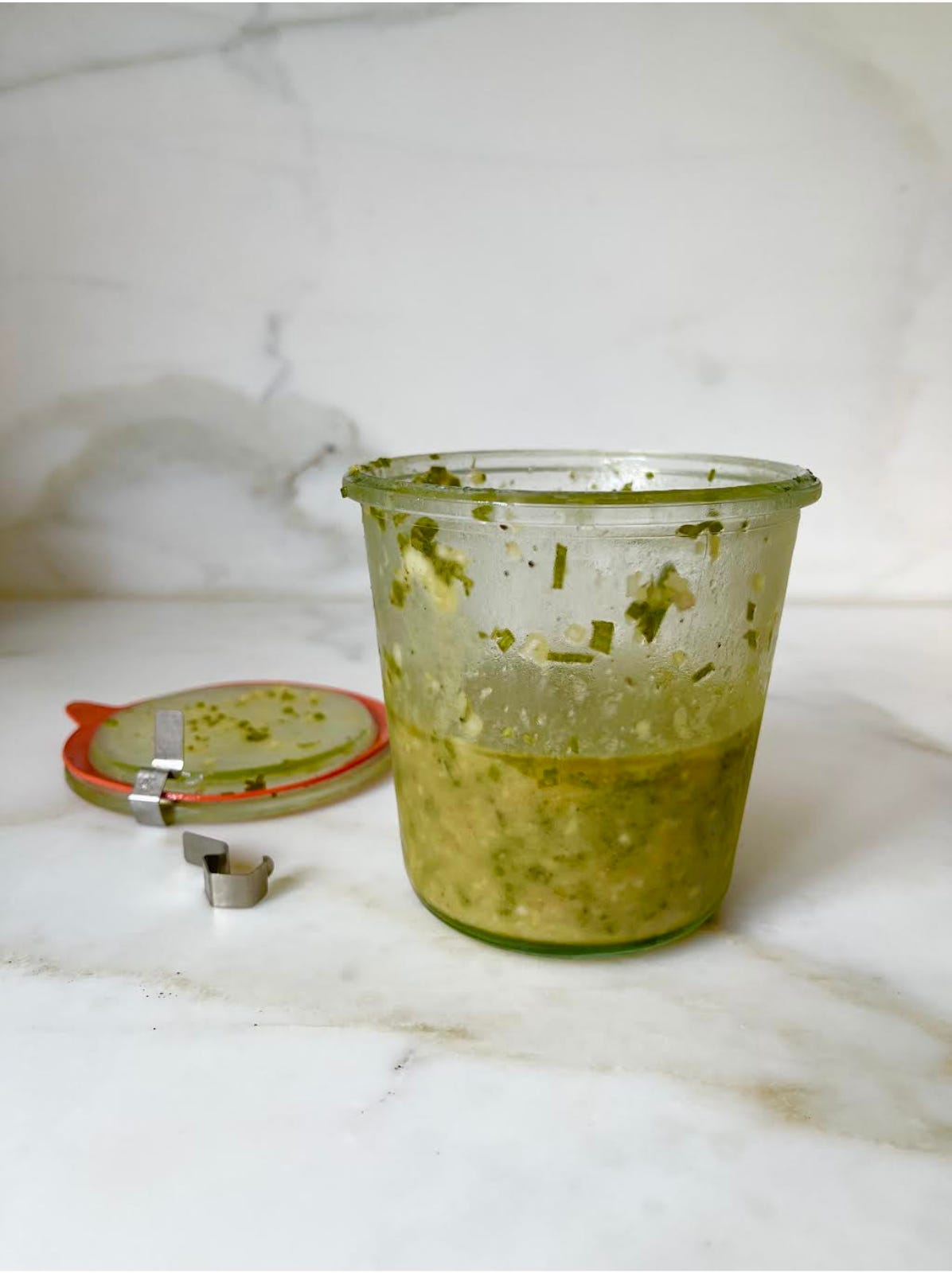 A bright, herb-packed vinaigrette inspired by my friend Sunny’s go-to — it’s become a staple in my fridge.