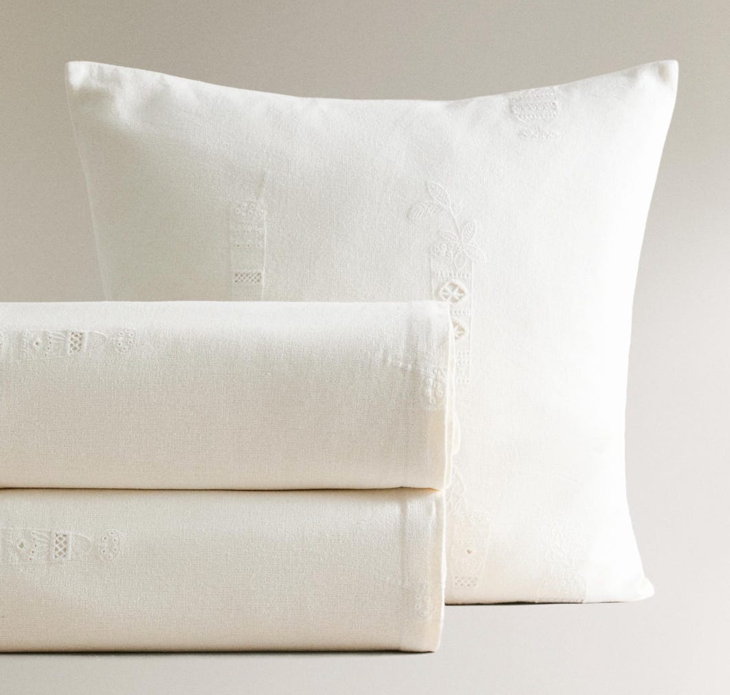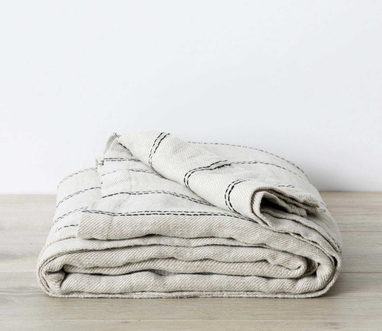 This heirloom-inspired linen cover has an airy weight and beautiful contrast stitching. It feels equal parts tailored and relaxed — perfect for a textured top layer that doesn’t feel too heavy.