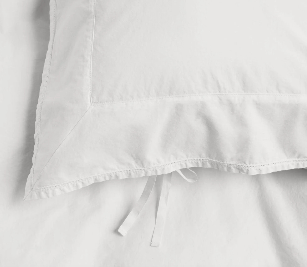 Handcrafted from organic cotton in a delicate percale weave and lightly stone‑washed for a soft‑crisp finish, this pillow sham features a refined rectangular border enhanced with a classic needle‑lace technique that adds timeless texture and elegance.