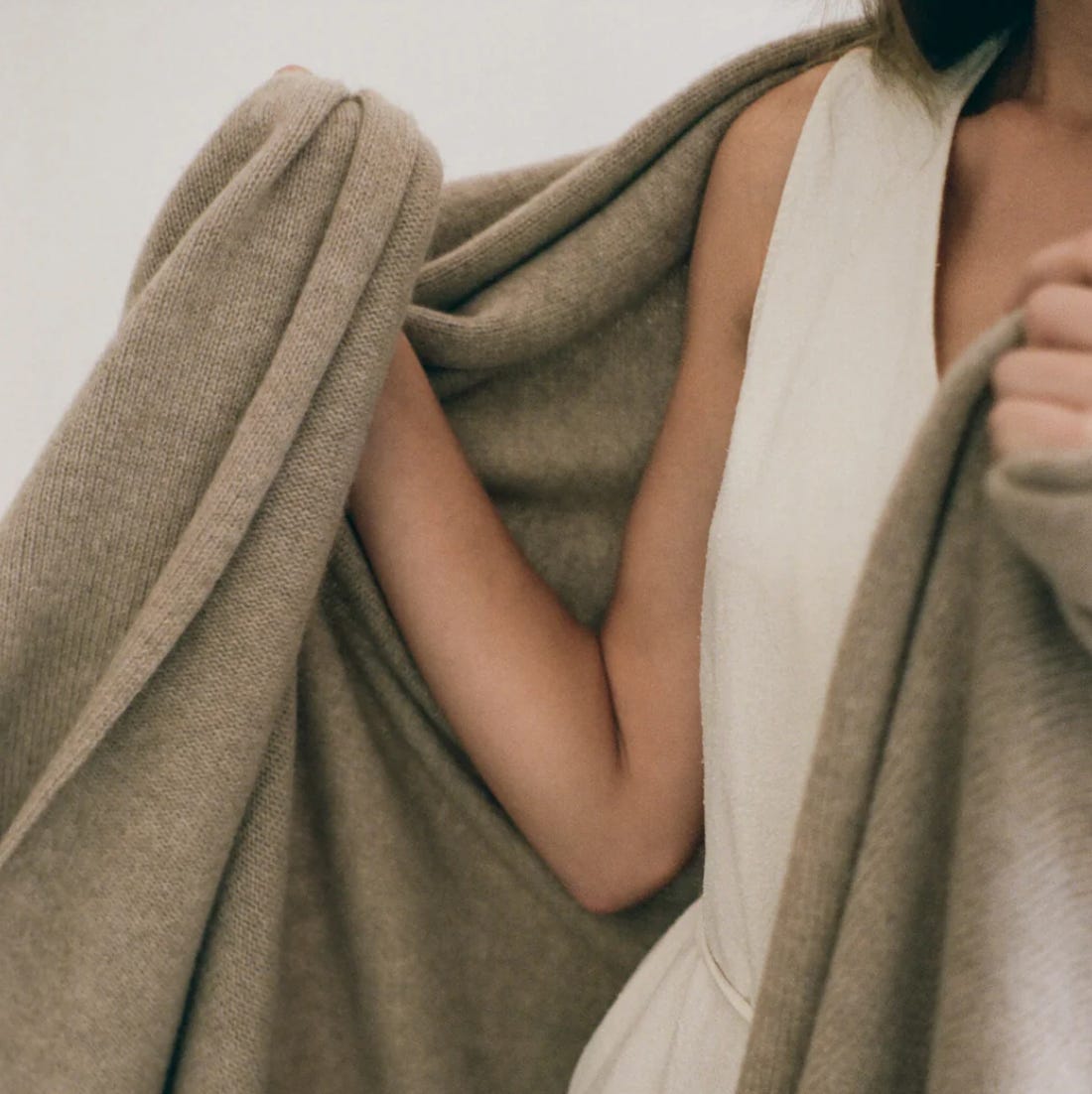 5. Cloudknits Oversized Italian Cashmere Jersey Blanket in Oat
