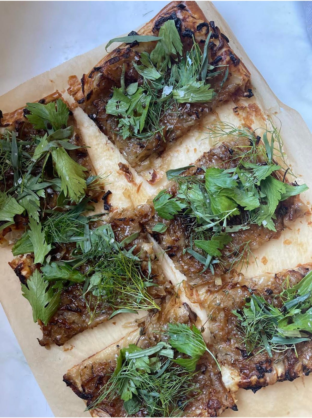 A deeply caramelized, savory tart layered with herbs and a drizzle of aged balsamic — the kind of dish that makes you feel like you're in a tiny French kitchen.