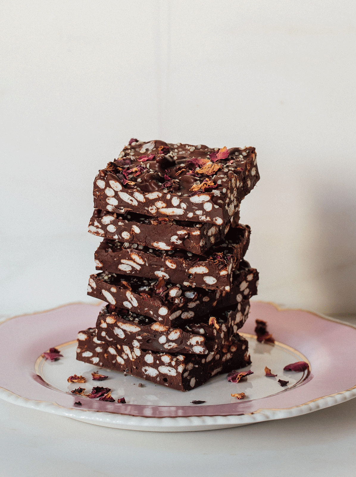 A simple, elegant treat that blends dark chocolate with a touch of rose and a crunchy, nutritious twist.