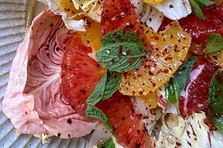 A crisp and refreshing winter salad featuring bright citrus, bitter greens, and a lightly spiced Aleppo dressing.